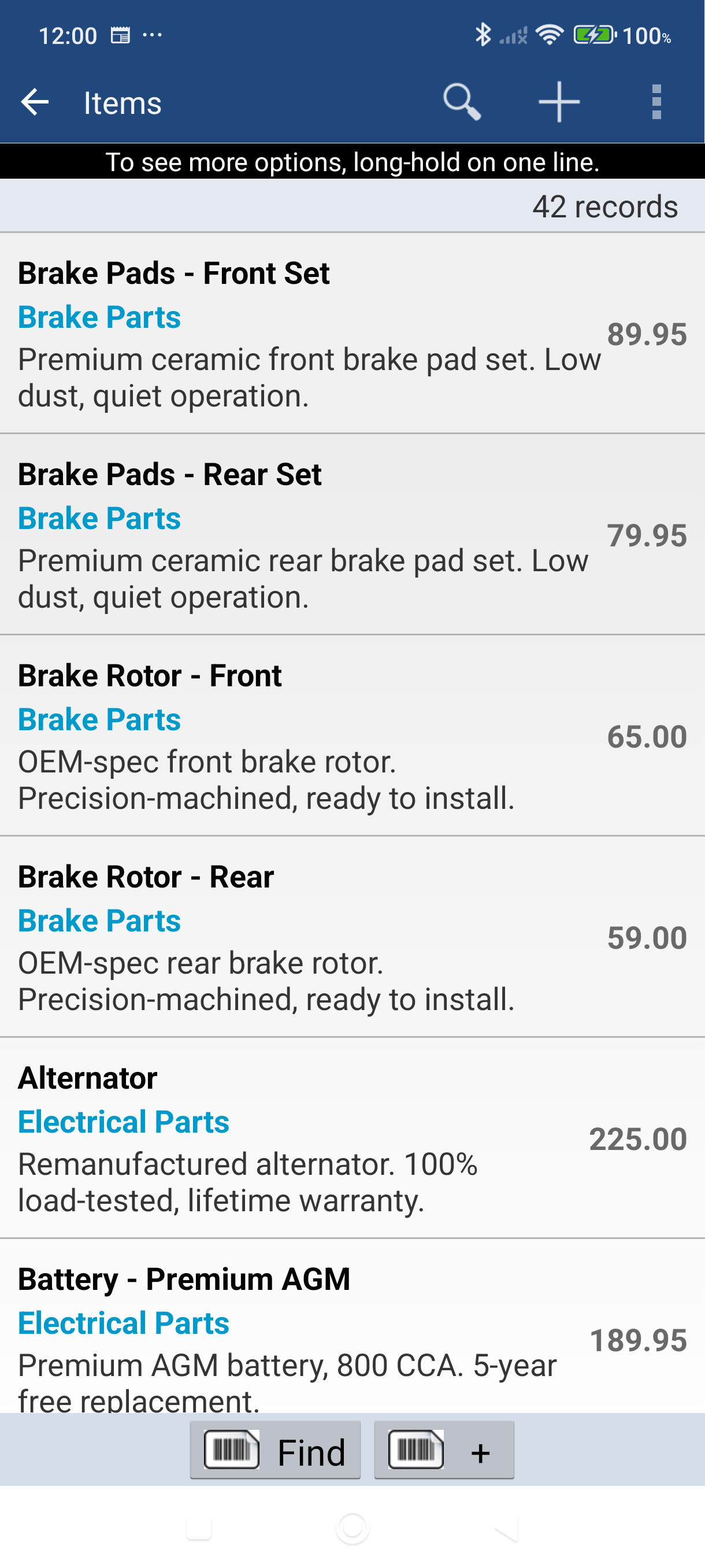 Tap the line item to review or adjust the quantity and price if needed.